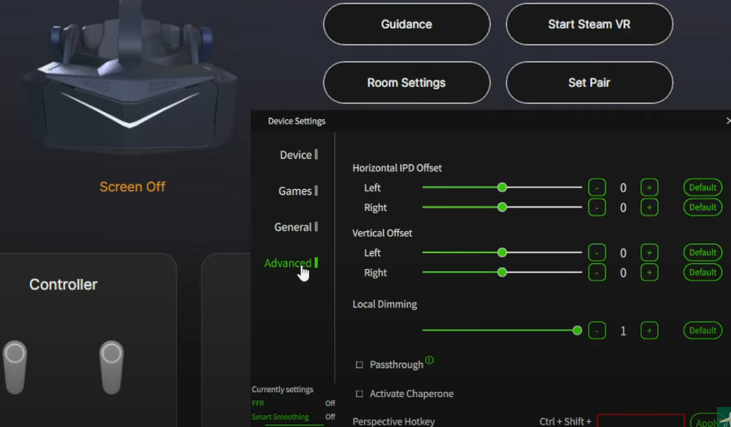 Pimax Crystal Settings